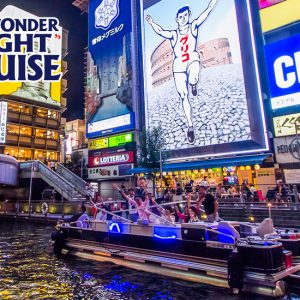 「大阪ワンダークルーズオーナーズ倶楽部」は美しくライトアップされた橋梁や大阪城、大阪一の繁華街・道頓堀のグリコ看板、日本最大級のダイナミックなパナマ運河方式の東横堀川水門など、水辺から大阪の夜景をお楽しみいただけるナイトクルーズです。