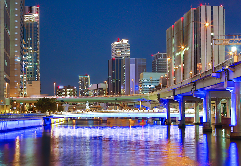 ライトアップされた橋梁、大阪城、道頓堀など水都大阪の夜景を巡るナイトクルージング