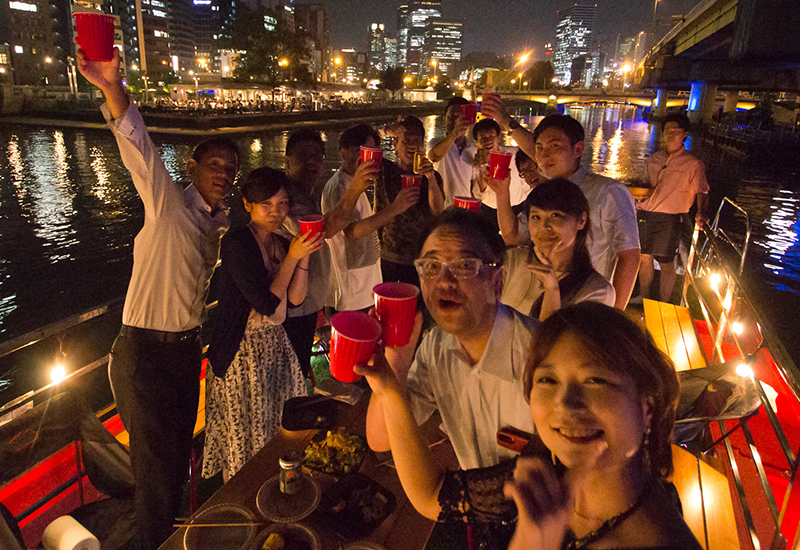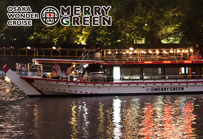 「メリーグリーン」は、天満橋・八軒家浜船着場から毛馬閘門往復10 キロの水都大阪を運航する日本初の水上バーベキューが楽しめるグランピング船です。